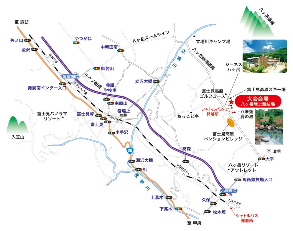 大会送迎シャトルバスは「小淵沢」駅より運行しています。